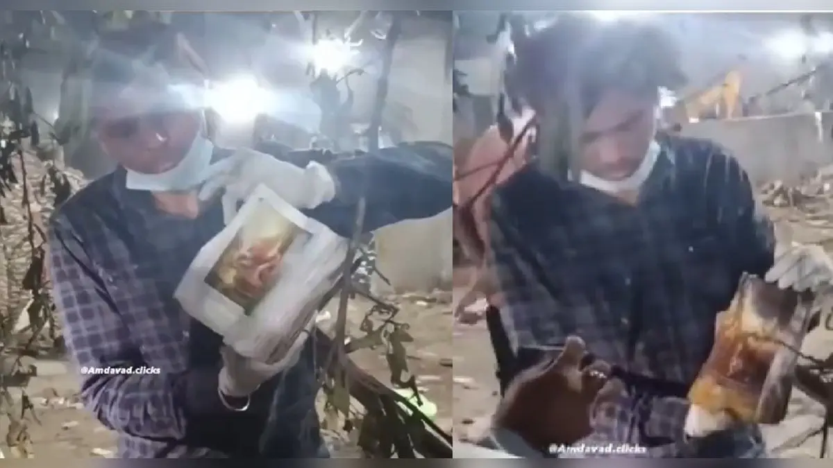 ஏர் இந்தியா விமானம் விபத்து நடந்த இடத்தில் மீட்புப் பணிகள் நடைபெற்று வரும் நிலையில், மீட்புப் பணியின்போது ஒருவர் பகவத் கீதை புத்தகத்தை எடுத்து, அதைத் திறந்து காட்டும் வீடியோ இணையத்தில் வைரலாகி வருகிறது.