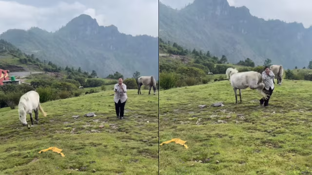 நேபாளத்தின் குரி கிராமத்தை சேர்ந்த அவிப்ஷா கானல் என்ற சமூக வலைதள பிரபலம், அங்கு ரீல் பதிவு செய்து கொண்டிருந்தபோது, திடீரென ஒரு குதிரை அவரை தாக்கியது. இந்த அதிர்ச்சி வீடியோவை அவர் தனது இன்ஸ்டாகிராம் பக்கத்தில் பகிர, அது தற்போது காட்டுத்தீயாக பரவி வருகிறது.