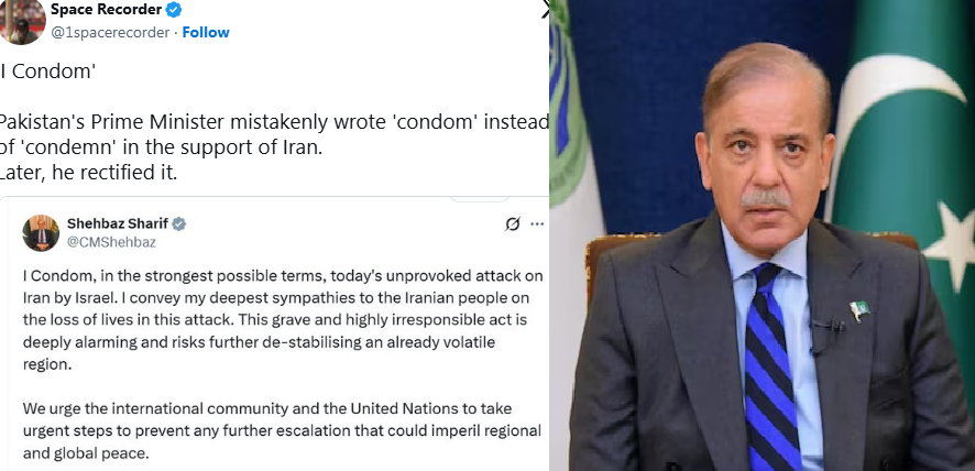 இஸ்ரேல் – ஈரான் மோதல் குறித்து ஷெபாஸ் ஷெரீப் வெளியிட்ட சமூக வலைத்தள பதிவில், “I condemn” (நான் கண்டிக்கிறேன்) என்பதற்கு பதிலாக “I condom” (நான் காண்டம்) என்று தவறுதலாக டைப் செய்ததாக ஒரு ஸ்கிரீன்ஷாட் காட்டுத் தீயாக பரவி வருகிறது. இஸ்ரேலின் தாக்குதலை கண்டிக்கும் நோக்கில் எழுதப்பட்ட இந்த பதிவு, உடனே இணையத்தில் விவாதங்களையும், எண்ணற்ற மீம்களையும் அள்ளிவிட்டது.