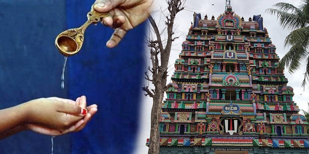 பெருமாள் கோவிலுக்குச் சென்றால் அங்கு தீர்த்தம் கொடுப்பார்கள். இது எதற்கு தருகிறார்கள் என்று பலருக்கும் தெரியாது. வாங்கிக் குடித்து விட்டு கண்ணில் ஒற்றி, தலையில் தடவி விட்டுச் செல்வதைப் பார்த்திருப்போம். ஆனால் இதன் உண்மையான தாத்பரியம் இதுதான். பெருமாள் கோவிலைப் பொருத்தவரையில் 3 முறையில் தீர்த்தம் வாங்க வேண்டும். இதைக் கேட்டும் வாங்கலாம்.