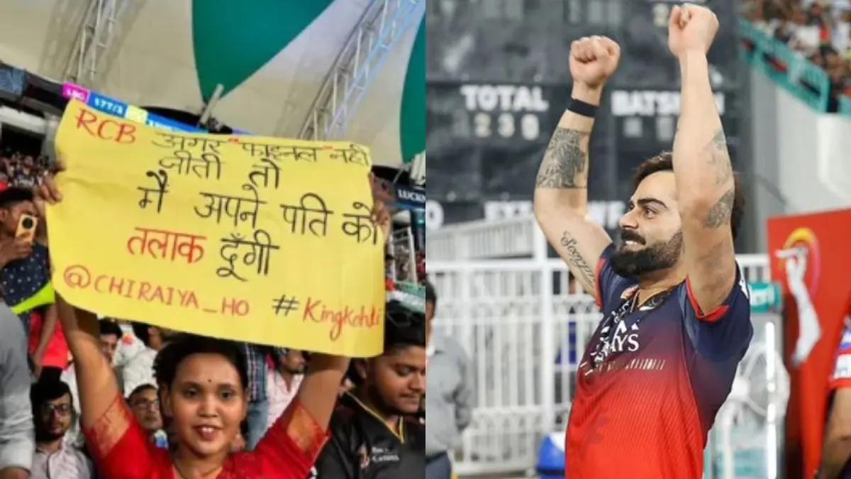 ஐபிஎல் வரலாற்றில் ஒரு கோப்பையும் வெல்லாதிருந்தாலும், பெங்களூரு அணிக்கு மிகப்பெரிய ரசிகர் கூட்டம் இருப்பது மறுக்க முடியாத உண்மை. பெங்களூரு இறுதிப்போட்டிக்கு முன்னேறிய நிலையில், ஒரு பெண் ரசிகை ஸ்டேடியத்தில் பிடித்திருந்த போஸ்டரில், இந்த வருடம் பெங்களூரு கோப்பை வெல்லவில்லை என்றால் எனது கணவரை நான் விவாகரத்து செய்வதாக உறுதிமொழி அளிக்கிறேன் என்று கூறப்பட்டிருந்தது. அந்த புகைப்படம் பெங்களூரு வெற்றிக்கு பிறகு வைரலானது.
