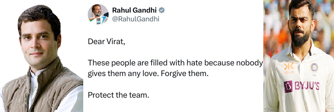 இந்த நேரத்தில்தான் ராகுல் காந்தி மேற்கண்ட ட்வீட்டை பதிவு செய்தார். “இன்றைய நேரத்திற்கும் இது பொருத்தமாக இருக்கிறது,” என்றும், “இப்போதும் விராட் கோலியை பலர் வேண்டுமென்றே குறை சொல்லி வருகிறார்கள்,” என்றும், “முன்கூட்டியே கணித்து இந்த ட்வீட்டை ராகுல் காந்தி பதிவு செய்திருக்கிறார்,” என்றும் கூறப்பட்டு வருகிறது.